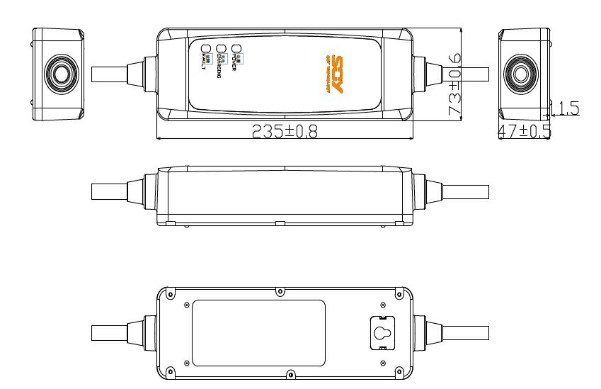 外壳尺寸: L235±0.8x W73±0.6x H47±0.5mm;